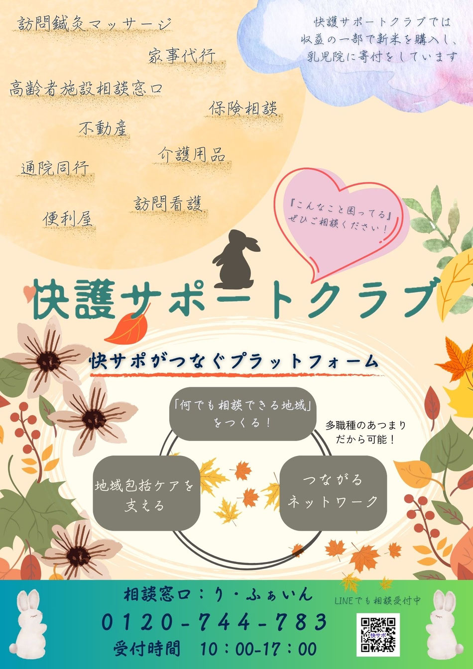 介護でお困りごとがあれば快サポまでご連絡ください。