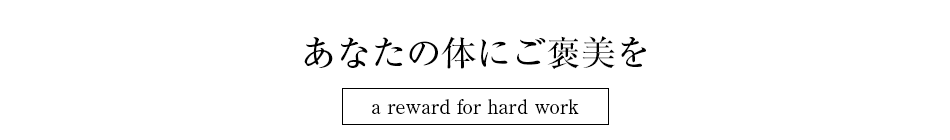 お客様ひとりひとりの症状やお好みに合わせて身体全体の疲れている筋肉を中心に、 こりをほぐし、リラックスした状態に近づけます。 「部分を集中的に」、「全身をくまなく」などお客様のご要望にお答えいたします。 お急ぎの方から、ゆっくりリフレッシュしたい方におすすめです。 |