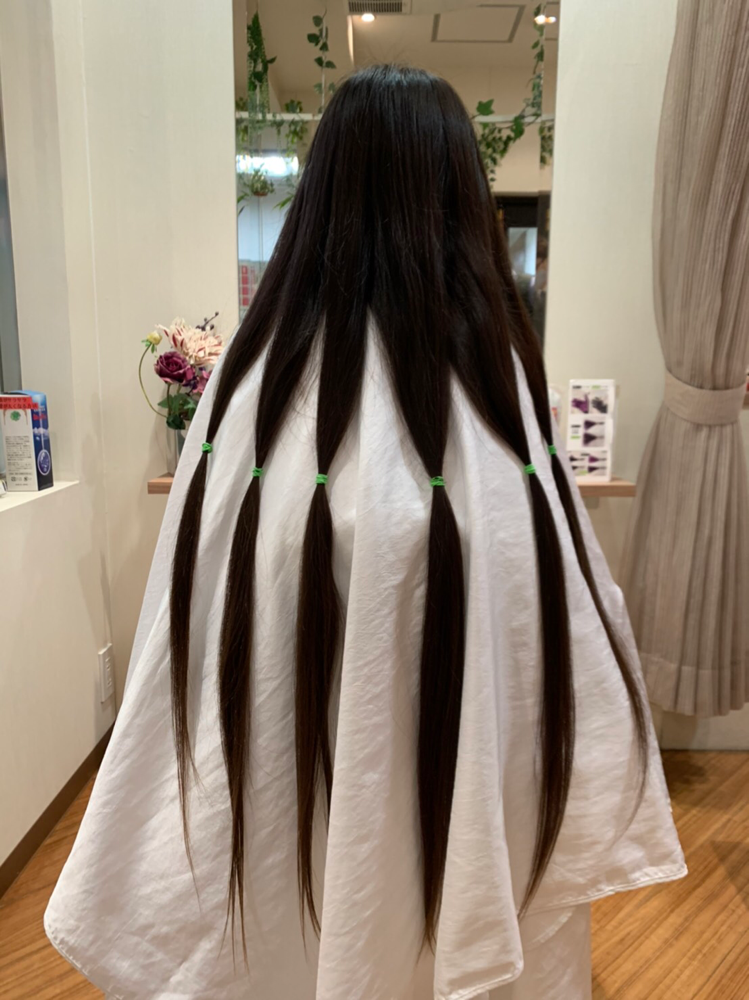 今回のカットで45㌢の髪の毛を寄付することができました。