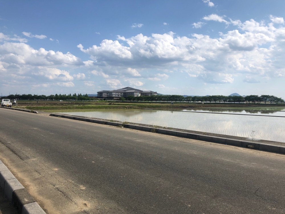 こどもの日がもうすぐという事もあり、河川を跨いでロープが張られ、多くの鯉のぼりが掲げられていました。ちょうど天気もよく、青空の下で周囲の並木も新緑で瑞々しかったです。景色が綺麗なだけでなく、そこまで暑い季節でもないので、快適に散策する事が出来ました。近辺の田圃も田植えの作業がここ数日で一気進んでおり、いよいよ季節は夏に向かって進んでいるのだなと実感しました。