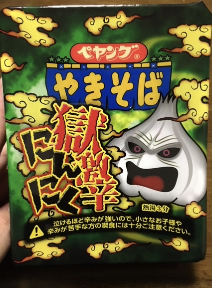 ペヤングの獄激辛にんにくやきそばです。